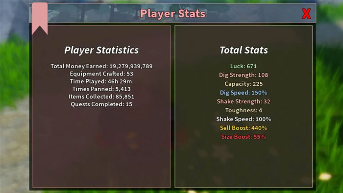 - Dig Strength (Sức đào): Ảnh hưởng đến lượng quặng người chơi xúc được mỗi lần. Đây là chỉ số quan trọng suốt cả game vì nó tăng tốc độ cày tài nguyên tổng thể.