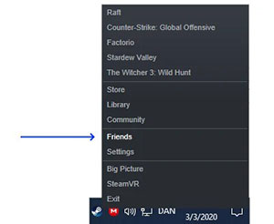 Khi đã tìm thấy ai đó để chơi cùng, hãy thêm nhau trên Steam. Để thêm bạn bè, hãy nhấp chuột phải vào biểu tượng Steam trong khu vực thông báo, nhấp vào Friends.