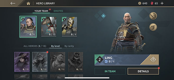 Điều thực sự quan trọng là người chơi phải hiểu điểm mạnh và điểm yếu của các nhân vật trong nhóm của mình. Nhấn vào một nhân vật trong Hero Library > nút Details. Một bảng phân tích các kỹ năng của nhân vật đó, cũng như xếp hạng tấn công, phòng thủ sẽ xuất hiện.