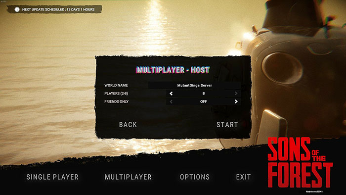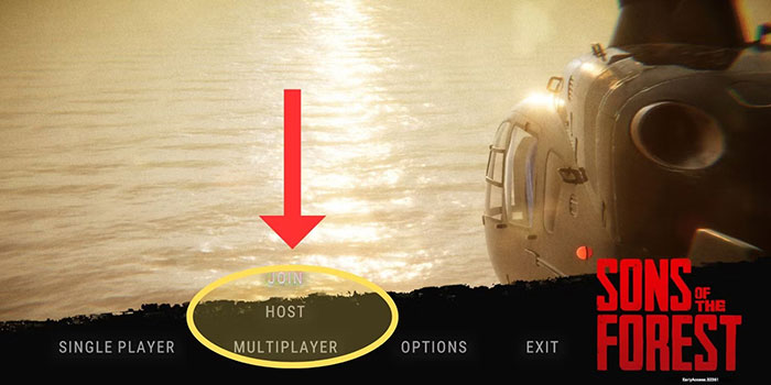 Sons of the Forest có 2 tùy chọn để chơi trực tuyến: host máy chủ hoặc tham gia một máy chủ có sẵn. Sau khi khởi động trò chơi, game thủ có thể truy cập cả 2 tùy chọn từ màn hình bắt đầu bằng cách chọn Multiplayer trên menu dưới cùng.