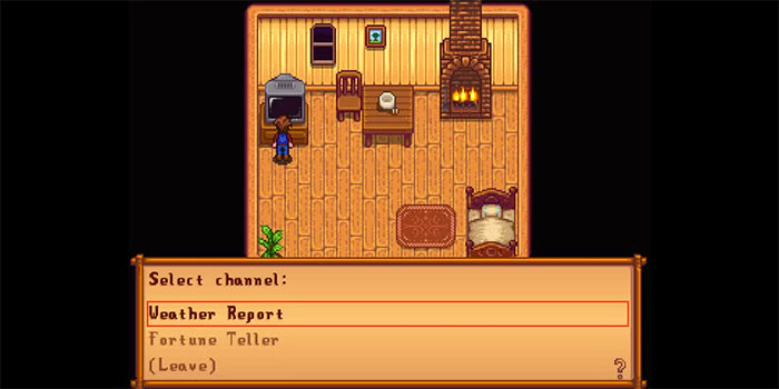 | Fortune Teller | Xem vận may trong ngày (Luck). Trong vài ngày đầu, Luck chủ yếu ảnh hưởng đến lượng gỗ rơi từ cây, tỷ lệ tìm thấy thang trong hầm mỏ và cơ hội tìm kho báu khi câu cá. |