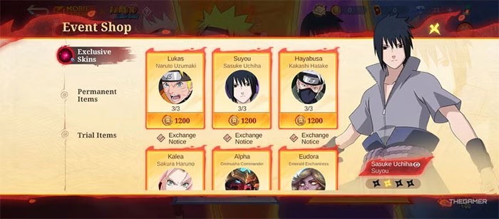 Cách chính để nhận các trang phục Naruto là quay gacha trong sự kiện. Tuy nhiên, tỷ lệ quay trúng trang phục khá thấp và trang phục người chơi nhận được sẽ là ngẫu nhiên. Vì vậy, có một cách khác để chọn đúng trang phục mình muốn: thu thập Coins of Flame từ các lượt quay gacha.