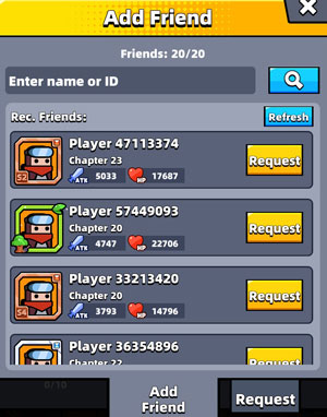 Thêm người chơi ngẫu nhiên khá dễ dàng bằng cách nhấn Refresh để nhận danh sách người chơi mới. Sau đó, ấn Request bên cạnh tên người chơi muốn thêm để gửi lời mời kết bạn.