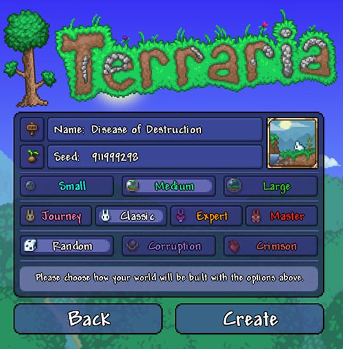 Sau khi tạo nhân vật, game thủ cần tạo một thế giới mới. Tương tự nhân vật, mọi người cũng có một số tùy chọn khi tạo thế giới: