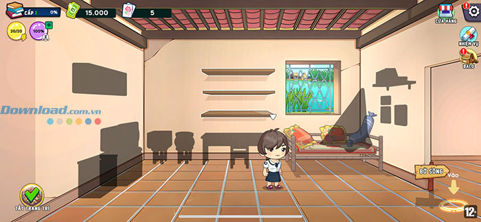 Ngoài ra, trong Nhà, mọi người cũng có thể trang trí cho phòng của mình bằng cách dùng tiền và mua đồ nội thất mới. Chạm vào Trang trí phòng, chọn từng nội thất muốn mua như TV, tủ đồ, bàn học,... và thanh toán để mua vật phẩm.