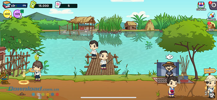 Ngay trên bờ sông có một cây xoài sai trĩu quả. Người chơi có thể hái trộm xoài để đổi Phiếu trò chơi tại Căn tin. Hãy nhớ quay lại cây xoài sau mỗi 15 phút để hái 1 quả xoài, đồng thời tránh bị ông hàng xóm phát hiện và chó đuổi theo.