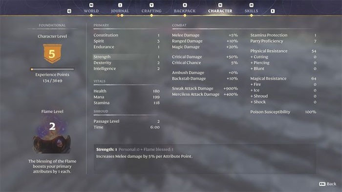 Vì vậy, nếu đầu tư vào một mục giúp tăng thuộc tính Spirit lên 1, về cơ bản người chơi sẽ nhận được nhiều Mana hơn. Từ menu nhân vật, game thủ có thể nhấp vào All Attributes để biết chi tiết về mọi thứ ảnh hưởng đến nhân vật của mình.