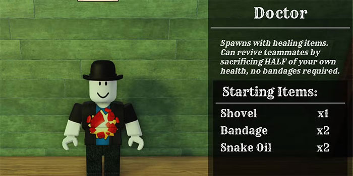 Doctor là class hoàn hảo cho những ai muốn giữ cho đồng đội của mình khỏe mạnh và giúp việc hồi máu trong Dead Rails dễ dàng hơn nhiều.