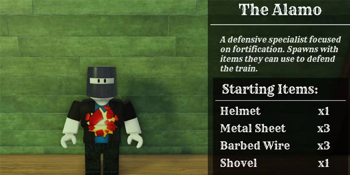Alamo tập trung vào việc xây dựng phòng thủ vật lý, game thủ có thể sử dụng để bảo vệ đoàn tàu khỏi bị thây ma tấn công. Class này đi kèm với một loạt các vật phẩm phòng thủ có thể xây dựng được.