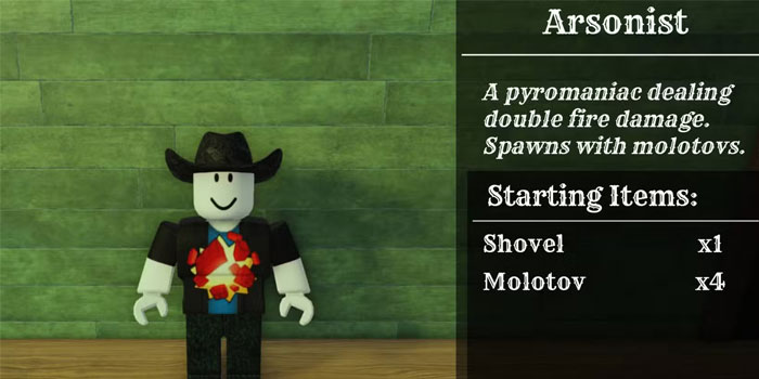 Arsonist là một lớp tấn công có thể gây ra sự tàn phá hoàn toàn với đặc quyền gây sát thương hỏa lực kép. Class này cũng xuất hiện với một số bom xăng để bắt đầu.