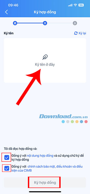 Bước 4: Đọc Nội dung hợp đồng, chính sách và điều khoản, sau đó Ký tên và nhấn Ký hợp đồng.