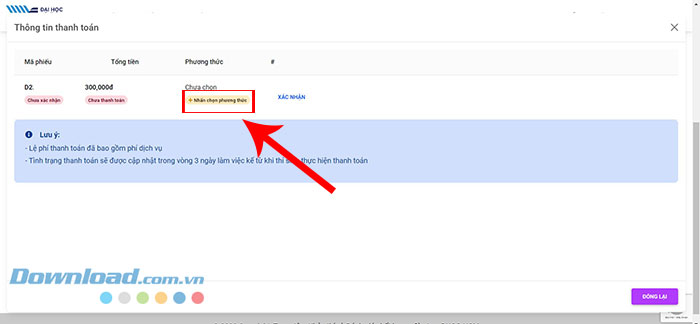 Bước 8: Trang Thông tin thanh toán sẽ mở ra, thí sinh cần chọn Nhấn chọn phương thức thanh toán.