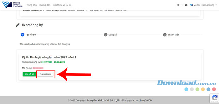 Bước 7: Nhấn vào Thanh toán để bắt đầu nộp lệ phí thi.