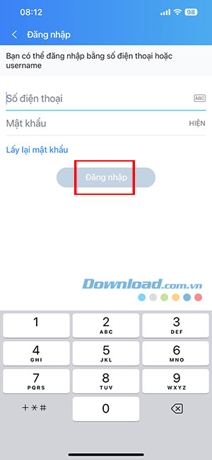 Bước 4: Nhập Số điện thoại và Mật khẩu của tài khoản Zalo khác. Nếu không nhớ mật khẩu, mọi người có thể ấn Lấy lại mật khẩu và làm theo hướng dẫn. Sau đó, nhấn nút Đăng nhập.