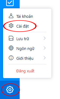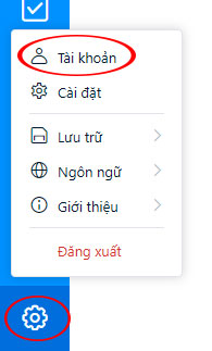 Tại giao diện chính hãy nhấn chọn đến biểu tượng Cài đặt --> Tài khoản.