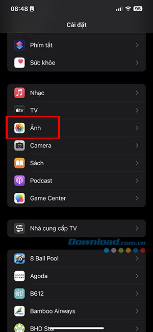 Bước 3: Mở Cài đặt trên iPhone và điều hướng tới Ảnh.