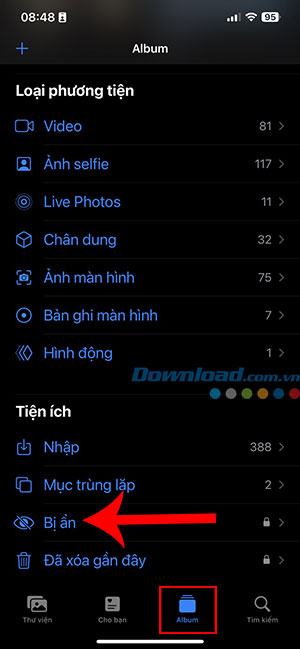 Nếu không muốn hiển thị album Bị ẩn, mọi người không cần bật tùy chọn Hiển thị album Bị ẩn.