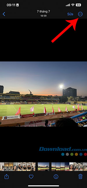 Bước 1: Truy cập Thư viện Ảnh trên iPhone và chạm vào hình ảnh hoặc video muốn ẩn để mở nó. Sau đó nhấn vào biểu tượng ba dấu chấm ở góc trên cùng bên phải.
