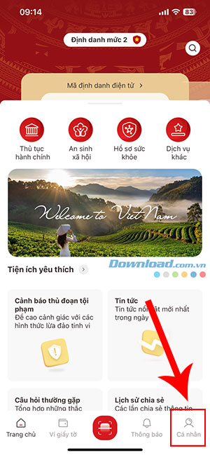 Bước 1: Mở và đăng nhập vào ứng dụng VNeID. Sau đó, truy cập tab Cá nhân giống như đã hướng dẫn ở trên.