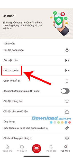 Bước 2: Chạm vào Đổi passcode và nhập passcode VNeID hiện tại. Nếu quên, mọi người có thể tham khảo Cách lấy lại mã passcode VNeID.