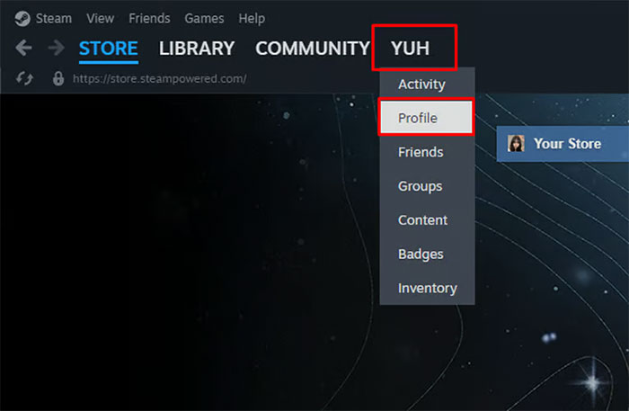 Bước 1: Trên Steam Client, hãy truy cập trang hồ sơ Steam của mình bằng cách nhấp vào biệt hiệu của mình bên cạnh tab Community ở phía trên bên trái.