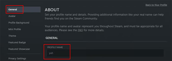 Bước 3: Trong phần General, mọi người sẽ thấy Profile Name của mình. Để thay đổi biệt hiệu, chỉ cần nhập nickname mới mà mọi người mong muốn.