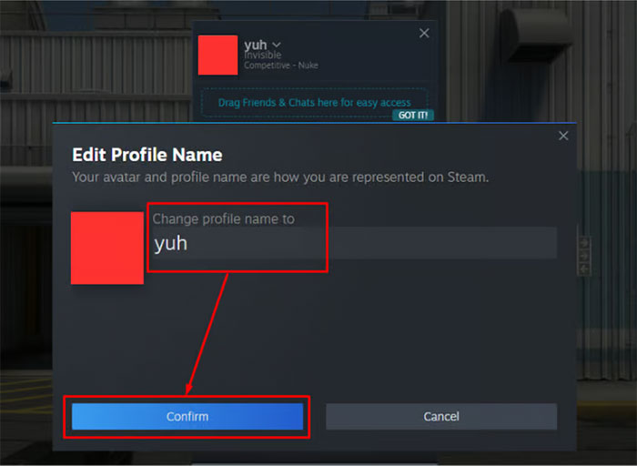 Bước 3: Tại đây, hãy đặt tên mới mà mọi người muốn đổi. Khi đã hoàn tất đổi nickname CS2 của mình, nhấn nút Confirm.