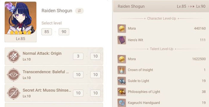 Ngoài các nhân vật, công cụ này cũng sẽ tính toán các nguyên liệu cần thiết để nâng cấp vũ khí. Nhưng hiện tại, tính năng này không đồng bộ với tiến trình trong trò chơi, ngay cả thông qua ứng dụng HoYoLAB.