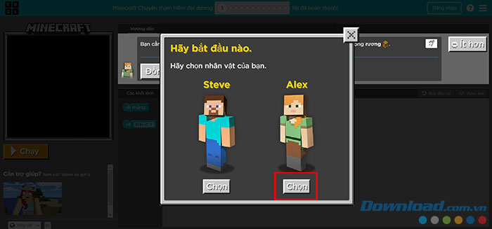 Bước 4: Chọn Steve hoặc Alex làm nhân vật của mình.