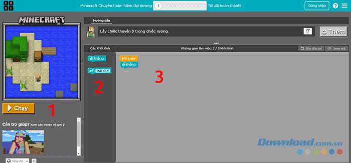 Bước 1: Truy cập trang web https://code.org/minecraft, chọn Tiếng Việt và nhấn Submit.