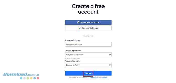 Bước 3: Nhấn Sign up để hoàn tất đăng ký tài khoản.
