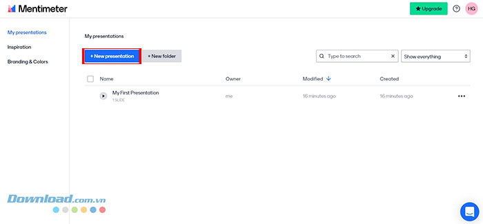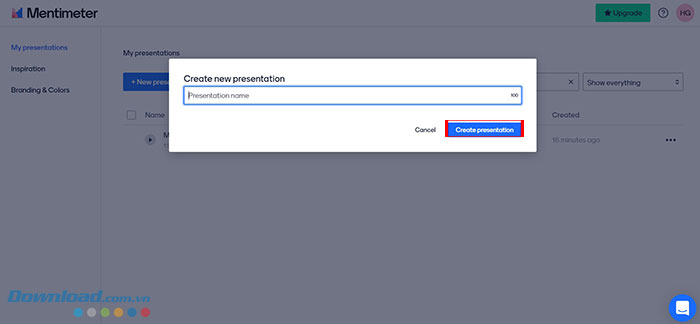 Khi đã đăng nhập vào tài khoản Mentimeter, người dùng có thể tạo một bản trình bày mới với một vài bước đơn giản: