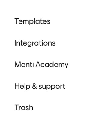 Nếu không biết bắt đầu từ đâu hoặc muốn nhanh chóng tạo một bản trình bày, Mentimeter có một bộ sưu tập lớn các ví dụ và mẫu được tạo sẵn trong phần mẫu nằm ở Dashboard người dùng.