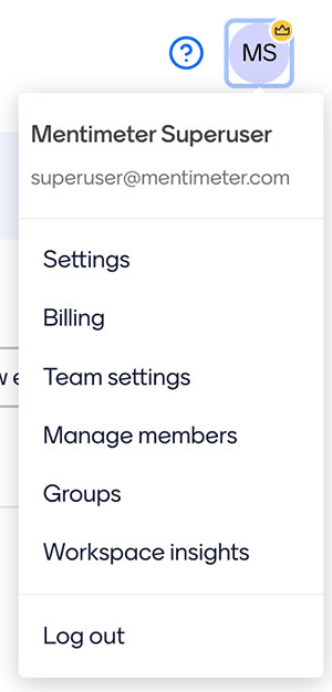 Menu ở góc trên bên phải bảng điều khiển của bạn có thể giúp điều hướng thẳng đến các trang cài đặt, thanh toán và quản lý nhóm: Cài đặt không gian làm việc, Quản lý thành viên, Nhóm và Thông tin chi tiết về không gian làm việc (dành cho Chủ sở hữu hoặc Quản trị viên của tài khoản Nhóm).