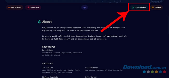 Để truy cập dịch vụ, người dùng cần phải có tài khoản Discord. Truy cập Midjourney.com, chọn Join the Beta hoặc truy cập trực tiếp vào MidJourney Discord.