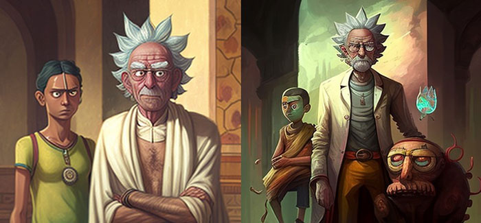 Lệnh /imagine: Indian version of Rick and Morty from an alternate reality in a parallel universe style 4b