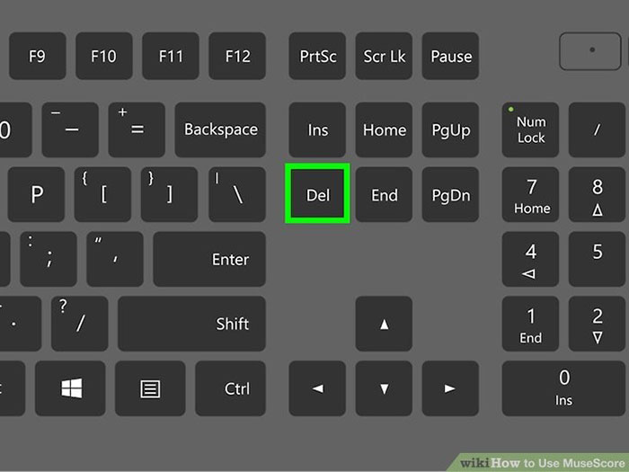 Chọn nốt nhạc và nhấn Delete trên bàn phím. Nếu một nốt vô tình bị xóa, mọi người có thể hoàn tác nó bằng cách nhấn Ctrl + Z.