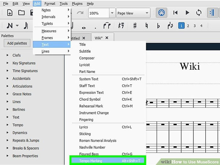 Bước 1: Chọn nốt nhạc và bấm vào Add trên thanh menu. Cuộn qua Text và tìm Tempo Marking. Một hộp văn bản có đánh dấu tempo sẽ xuất hiện ở đầu ô nhịp.