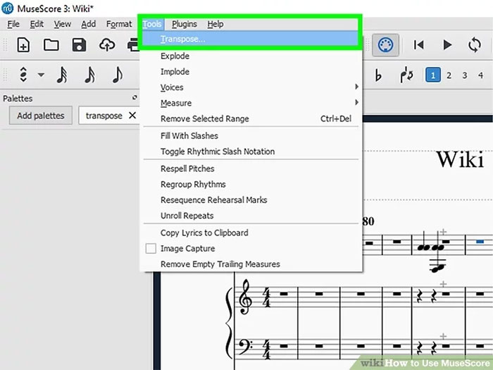 Bước 1: Nhấp vào Notes trên thanh menu rồi nhấp vào Transpose.
