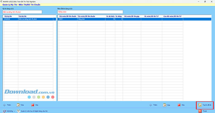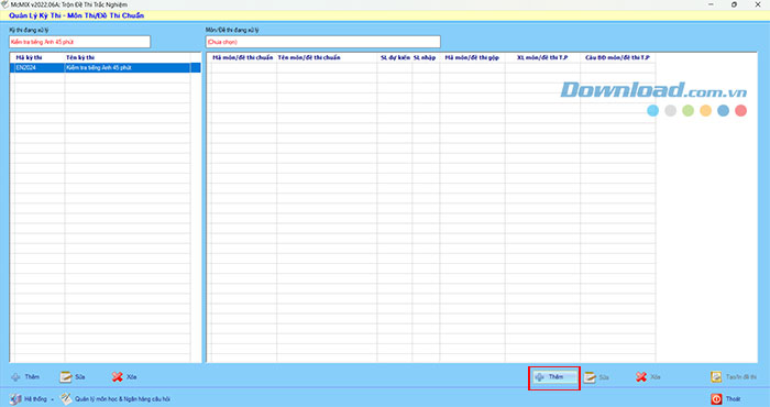 Bước 1: Nhấn nút Thêm tại giao diện chính của McMIX để tạo kỳ thi mới.