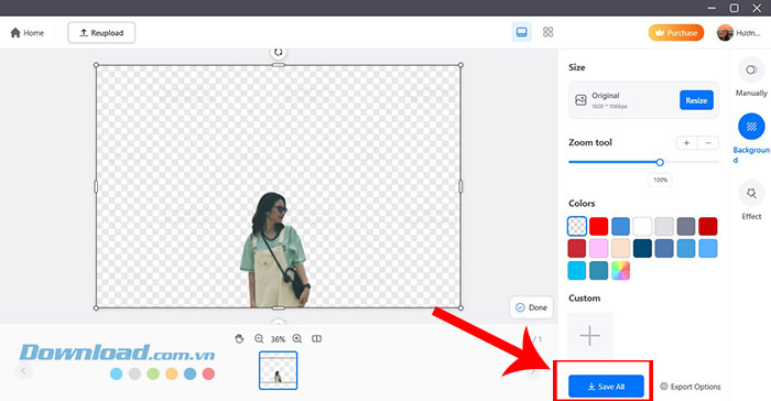 Bước 5: Chờ đợi trong giây lát và phần nền đã được loại bỏ khỏi ảnh. Nhấn vào Save All để tải xuống hình ảnh sau chỉnh sửa.
