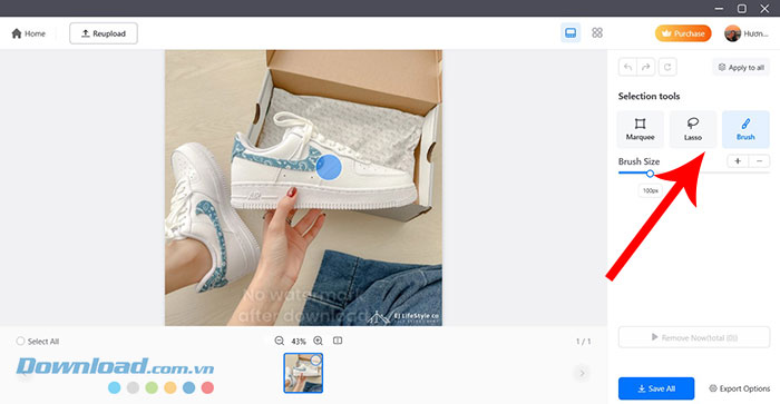Bước 2: Chọn 1 trong 3 công cụ Marquee, Lasso và Brush ở bên phải để lựa chọn vật thể muốn loại bỏ.