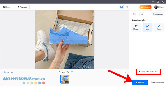 Bước 3: Sau khi chọn toàn bộ vật thể muốn xóa, hãy nhấn nút Remove Now để xem kết quả. Cuối cùng, nhấn Save All để tải ảnh xuống.