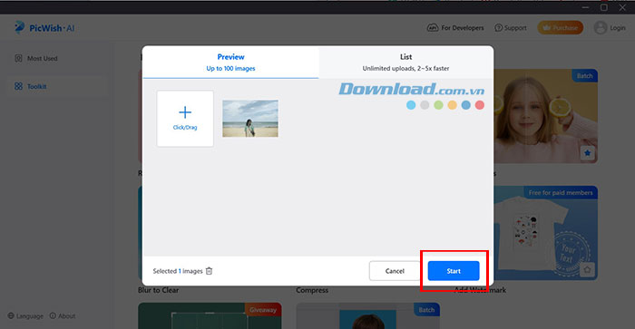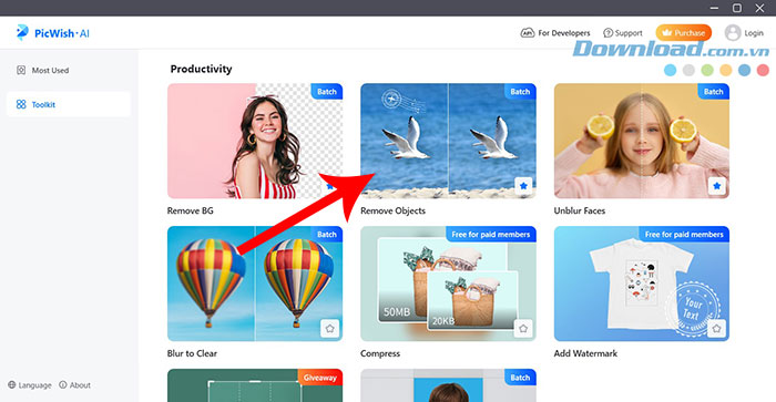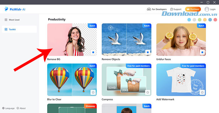 Bước 1: Chọn tab Toolkit và click vào Remove BG.