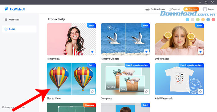 Bước 1: Truy cập trang web PicWish, nhấn vào Download để tải về phiên bản cho hệ điều hành đang sử dụng. Bài viết này hướng dẫn cài đặt PicWish trên máy tính Windows.