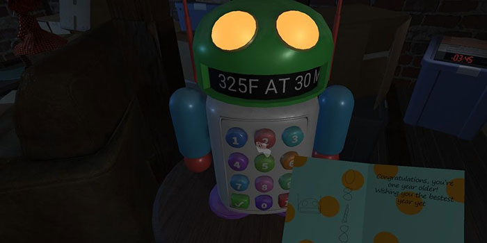Sau khi nhập mã, một chiếc bánh và một tấm thẻ sẽ xuất hiện trên bàn ở giữa phòng. Người chơi cầm thẻ tìm mã số bên trong, thay tất cả các cây nến bằng 1s (số cây nến trên chiếc bánh), rồi nhập mã số này vào Blabbot. Mã Blabbot thứ hai là 081821. Sau đó, nó sẽ hiển thị thời gian nấu và nhiệt độ 325 độ trong 30 phút.