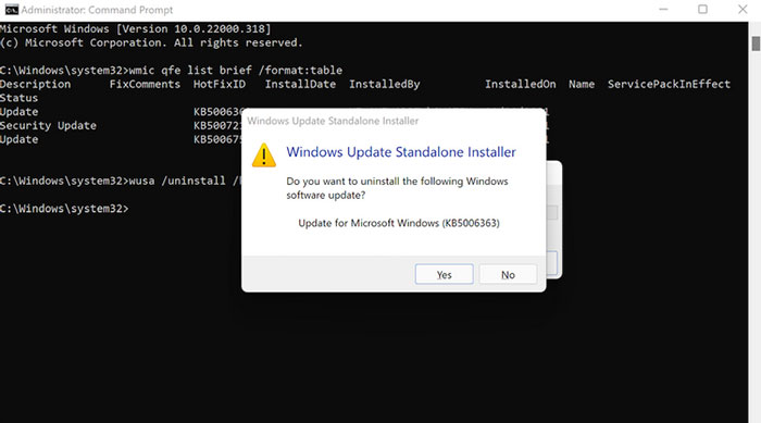 Nếu muốn gỡ cài đặt, chẳng hạn như bản cập nhật có HotFixID của KB5006363, thì người dùng phải đặt số ID thay cho mẫu HotFixID. Như vậy, lệnh sẽ trông như thế này: wusa /uninstall /kb:5006363