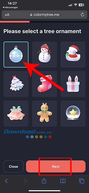 Bước 2: Lựa chọn một món đồ trang trí sẽ treo lên cây thông và nhấn Next.