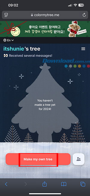 Mọi người sẽ được điều hướng tới cây thông mình đã tạo vào những năm trước đó. Chạm vào cây thông đó để xem chi tiết lời nhắn đã nhận được trước đây.