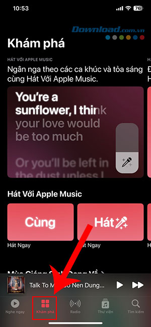 Bước 1: Mở ứng dụng Apple Music, truy cập tab Khám phá và nhấn vào banner của mục Hát Với Apple Music.
